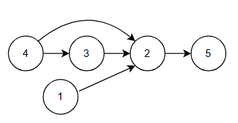 - result = [[4, 3], [4, 2], [3, 2], [1, 2], [2, 5]] ([A, B]는 "A가 B를 이겼다" 는 의미)